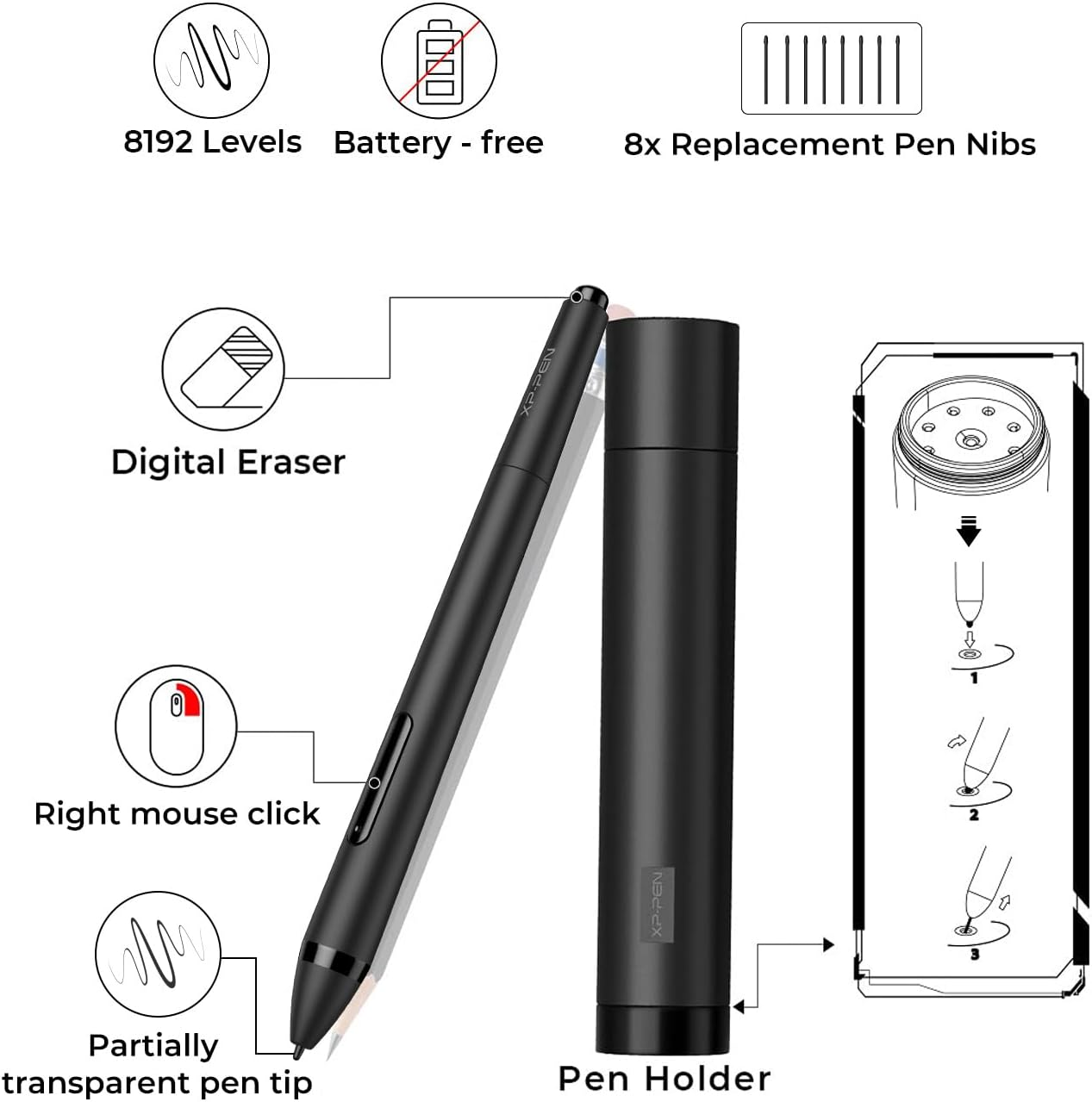 Lo que más me gusta es su sensibilidad a la presión de 8192 niveles, que permite un control natural y preciso en cada trazo. Además, el lápiz no necesita batería, lo que significa que siempre está listo para usar.